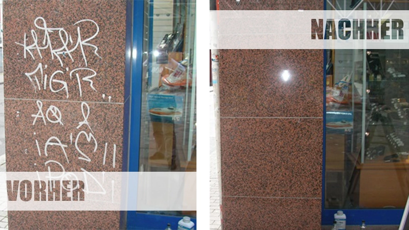 Blogbeitrag Oktober 2018 Graffitientfernung von NatursteinoberflächenJe nach Naturstein ist hier eine vollständige Reinigung der verschmierten Oberflächen möglich – und zwar unter Einsatz umweltfreundlicher Lösemittel. Hauptsächlich zum Einsatz kommen hierfür spezielle Reinigungsmaschinen, die Reinigungsgranulate einsetzen und die Natursteinoberflächen damit entsprechend materialschonend abstrahlen. Diese Reinigungsmöglichkeit eignet sich vor allem auch für sehr empfindliche Steine wie z.B. Sandstein. Je nach Beschaffenheit des zu reinigenden Natursteins, kommen dafür unterschiedliche Strahlmittel zum Einsatz, die unsere fachkompetenten Mitarbeiter vor Ort individuell auswählen. In einigen Fällen ist eine chemische Reinigung in mehrmaligen Arbeitsschritten ebenfalls erfolgsversprechend.